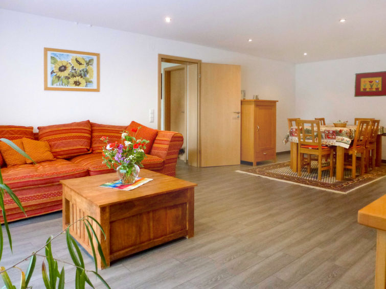 Mooi twee onder één kap woning "Schmetterlingsgarten", omgeven door weiden. In de plaats, 500 m van het centrum van Hüfingen, perfecte locatie: in het centrum en toch rustig gelegen, 2 km van de bosrand, van het meer, 150 m van de rivier. Voor medegebruik: terrein 2.000 m2, verzorgde tuin met gazon 500 m2, vijver. Stookplaats. In het huis: centrale verwarming. Wissel van linnengoed 1 maal per week. Parkeerplaats bij het huis. Winkel 250 m, supermarkt 200 m, winkelcentrum 250 m, restaurant 200 m, bakkerij 150 m, café, bushalte 50 m, treinstation "Hüfingen-Mitte" 500 m, openluchtzwembad 700 m, overdekt zwembad, meer (zwemmen) "Riedsee" 2 km. Golfterrein (45 holes) 4 km, tennis 1.5 km, manege 2 km, kinderspeelplaats 500 m. Attracties in de buurt: Wutachschlucht, Gauchachschlucht, Donauquelle, Römerbad. Vissen toegestaan (visvergunning noodzakelijk) (extra). De eigenaar heeft een hond.