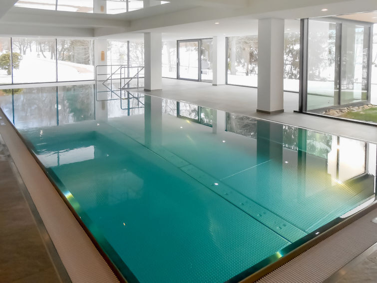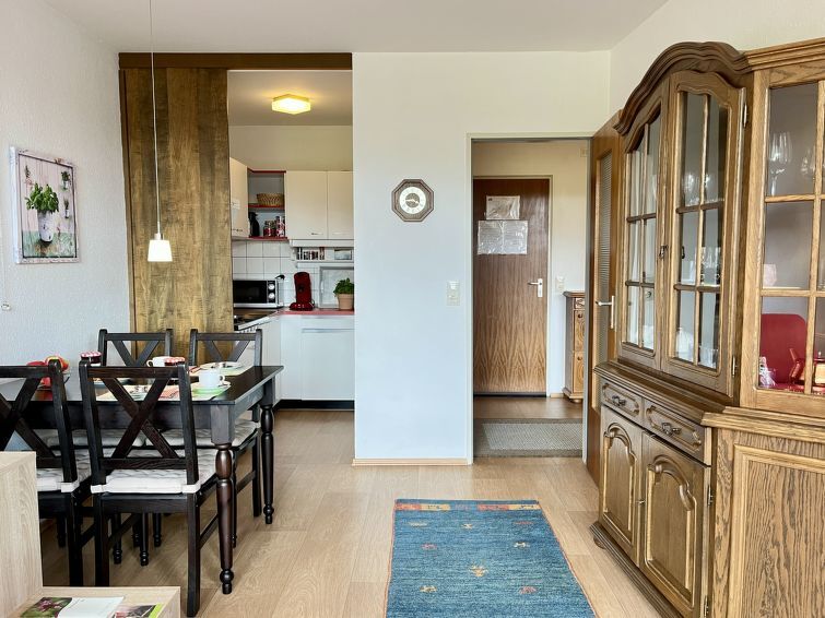 Flatgebouw "EX-Kurhotel Schluchsee", omgeven door bomen en weiden. Boven Schluchsee, 500 m van het centrum, 100 m van de bosrand, 500 m van het meer. Voor medegebruik: groot tuin met gazon en bomen, overdekt zwembad verwarmd (14 x 5 m, 130 - 140 cm diepte, openingstijden zwembad: 07:00-13:00 en 15:00-22:00). Douche/WC bij het zwembad, terras, tuinmeubelen. In het complex: salon, internetaansluiting, Internet (WiFi), sauna (extra). Fitnessruimte (extra). Biljart, speelkamer, tafelvoetbal, lift, berging voor ski's, centrale verwarming, wasmachine (extra), droger (voor medegebruik, extra). Parkeerplaats bij het huis, gemeenschappelijke garage bij het huis. Winkel, levensmiddelenwinkel, supermarkt 600 m, winkelcentrum 10 km, restaurant, bakkerij, café 600 m, fietsverhuur 500 m, centrum te voet bereikbaar in 10 minuten, bushalte 50 m, treinstation 800 m, zandstrand 500 m, 300 m, openluchtzwembad 800 m, meer (zwemmen) 500 m, meer Schluchsee 500 m. Zeilschool 800 m, tennis, tennishal 200 m, wandelroutes 1 m vanaf het huis, fietspad 50 m, skilift 2 km, rodelbaan 50 m, langlaufloipe 200 m, kinderspeelplaats 50 m, Vismogelijkheden 3 km. Attracties in de buurt: Staatsbrauerei Rothaus 10 km, Schwarzwaldhaus der Sinne 10 km, Dom St. Blasien 15 km, Badeparadies Titisee-Neustadt 25 km, Freiburg 55 km, Spasspark Hochschwarzwald 500 m. Bekende skigebieden kunnen gemakkelijk worden bereikt: Feldberg / Hochschwarzwald 20 km. Bekende meren kunnen gemakkelijk worden bereikt: Schluchsee 500 m, Titisee 25 km. Wandelgebied Schluchseer Jägersteig 1 km, Rothauser Land 8 km, Schluchseegebiet / Feldberggebiet.