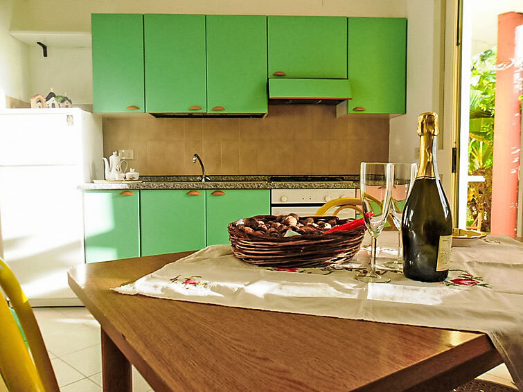 Appartement 3-kamers 50 m2. Eenvoudig en doelmatig ingericht: woon-/eetkamer met 1 2-pers divanbed en TV. 1 2-pers. kamer met air-conditioning en heteluchtverwarming. 1 kamer met 2 bedden, air-conditioning en heteluchtverwarming. Kookhoek (4-pits kookplaat, oven, diepvriezer, elektrische koffiemachine). Douche/bidet/WC. Klein balkon of zithoek in de tuin. Balkonmeubilair. Ter beschikking: haardroger. Parkeerplaats nr. 1. 1 klein huisdier/hond toegestaan. IT102030A1R496VAFX