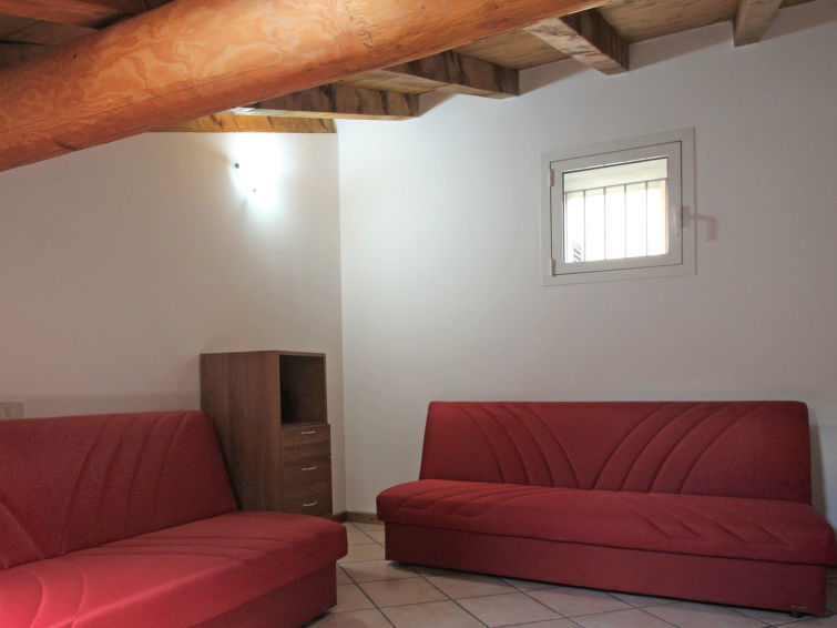"Relax", appartement 5-kamers 120 m2 op 2 verdiepingen op de 2e verdieping. Doelmatig ingericht: hal. Open eetkamer. 1 2-pers. kamer. 1 kamer met 1 x 2 stapelbedden. Open keuken (4-pits kookplaat, oven). Douche/bidet/WC. Bovenverdieping: woonkamer met afgeschuinde daken met dakraam met 2 divanbedden en TV. 1 kamer met 2 bedden. Bad/bidet/WC. Gas-verwarming (extra). Verwarming alleen beschikbaar van 15.10. tot 15.04. Klein balkon. Beperkt uitzicht op het meer. Ter beschikking: wasmachine, kinderstoel, kinderbed tot 2 jaar, haardroger. Internet (Internet (WiFi), gratis). De kamer met het stapelbed heeft een hoog raam met uitzicht op de badkamer. De tweepersoonsslaapkamer heeft een hoog raam met uitzicht op de keuken. IT013249C2SXKKTXMH