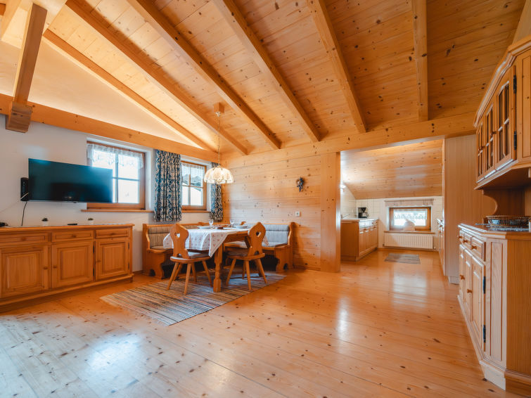 "Spielberg", appartement 2-kamers 63 m2 op de 2e verdieping. Gezellig en met veel hout ingericht: woon-/eetkamer met 1 divanbed, eettafel, eethoek, Sat-TV en elektrische verwarming. Uitgang naar het balkon. 1 2-pers. kamer. Groot, open keuken (4-pits kookplaat, oven, afwasmachine, broodrooster, diepvriezer, elektrische koffiemachine) met eettafel, eethoek en Sat-TV. Douche/WC. Verwarming. Parketvloeren. Groot balkon. Balkonmeubilair. Zeer mooi panoramazicht. 50620-000788-2022