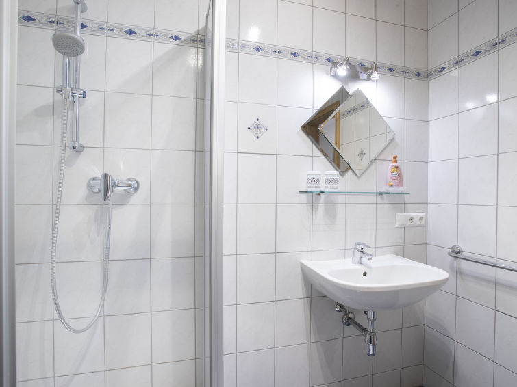 Appartement 5-kamers 90 m2 op de 1e verdieping. Zeer smaakvol en gezellig ingericht: hal. 2 2-pers. kamers. 1 kamer met 1 x 2 stapelbedden. 1 kamer met 2 x 2 stapelbedden. Woonkamer met 1 2-pers divanbed en Sat-TV (Flatscreen TV). Open keuken (oven, afwasmachine, 4 keramische glas kookplaten, magnetron) met eethoek. Uitgang naar het balkon. Douche, aparte WC. Balkon. Balkonmeubilair. Mooi panoramazicht op de bergen en het landschap. Ter beschikking: Internet (WiFi, gratis). Rookmelders.