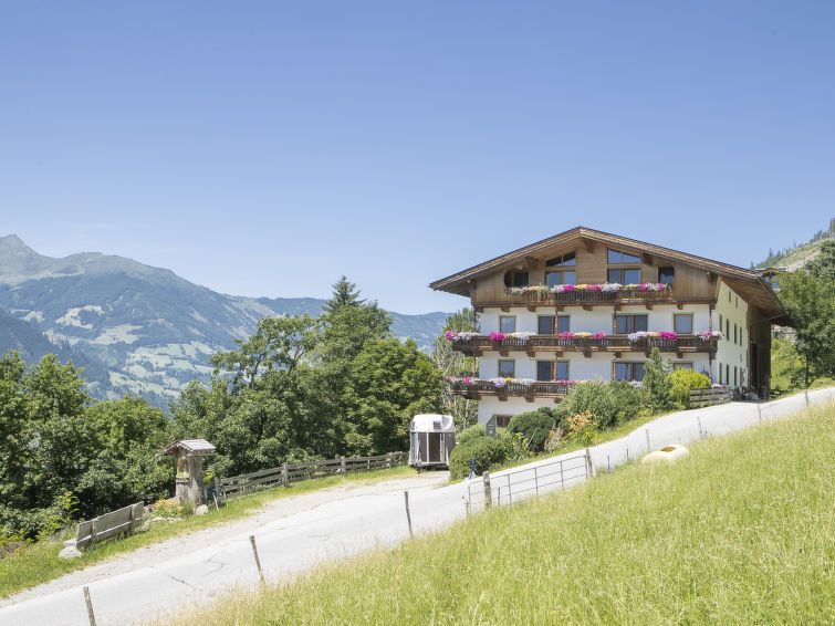 Gattererberg 5 km van Kaltenbach: Kindvriendelijke, comfortabele boerderij "Ferienhof Sonnseitn", omgeven door weiden. Boven Stumm, in de wijk Gattererberg, 4 km van het centrum van Stumm, 5 km van het centrum van Kaltenbach, rustige, zonnige ligging tegen een helling, 5 km van het meer, 4.7 km van het skigebied. Voor medegebruik: terrein, weide. Grill, kinderspeelplaats (glijbaan, schommel, zandbak). In het huis: sauna, infrarood sauna (alles extra), bergruimte voor fietsen, berging voor ski's, centrale verwarming. Toegangsweg tot aan het huis. In de winter sneeuwkettingen aanbevolen. Parkeerplaats bij het huis. Supermarkt 4 km, restaurant 1 km, bushalte "Gattererberg Hauleit" 160 m, treinstation "Kaltenbach-Stumm Bahnhof" 4.7 km, openluchtzwembad 4 km, thermaalbad "Erlebnistherme Fügen" 10 km, meer (zwemmen) 5 km. Tennis 5 km, kabelbaan op 4.7 km, ski faciliteiten 4.7 km, langlaufloipe 4 km, ijsbaan 5 km. Auto noodzakelijk. Geschikt voor families. Vergelijkbare accommodaties kunnen worden geboekt. De sauna is een Finse sauna en een infraroodsauna.