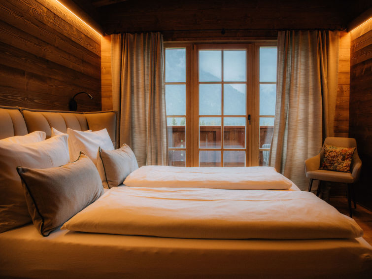 "Sissis Green Chalets/Kaiser Max", chalet 4-kamers 150 m2 op 2 verdiepingen. Luxueus en met veel hout ingericht: hal. 1 2-pers. kamer met douche/WC, TV en Digitale TV (Flatscreen TV). Groot woonkeuken (afwasmachine, 4 inductiekookplaten, broodrooster, waterkoker, magnetron, elektrische koffiemachine, kookeiland) met eettafel, open haard, TV en Digitale TV (Flatscreen TV), elektrische rolluiken. Uitgang naar het terras. Bovenverdieping: 2 2-pers. kamers, elke kamer heeft bad/douche/WC, TV en Digitale TV (Flatscreen TV). Uitgang naar het balkon. Groot terras 25 m2. Terrasmeubelen, barbecue, ligstoelen. Mooi uitzicht op de bergen. Ter beschikking: wasmachine, sauna, haardroger. Internet (WiFi, gratis). Parkeerplaats. Rookvrij huis. Maximaal 2 huisdieren/honden toegestaan. Privé ingang.