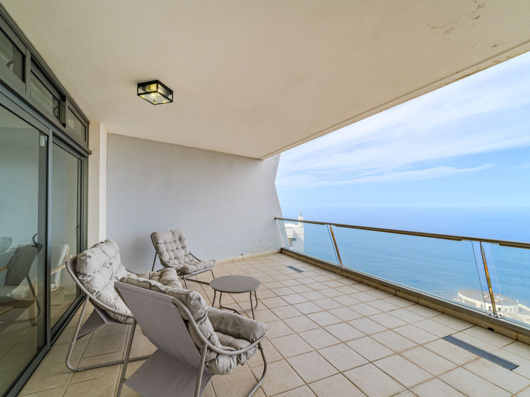 "Punta del Sol", appartement 3-kamers 110 m2 op de 1e verdieping. Het objekt is geschikt voor 4 volwassenen. Ruim en licht, doelmatig en comfortabel ingericht: woon-/eetkamer met Digitale TV en ventilator. Uitgang naar het balkon. 1 kamer met 1 2-pers bed (1 x 150 cm, lengte 190 cm), Digitale TV en ventilator. 1 kamer met 1 2-pers bed (1 x 150 cm, lengte 190 cm), ventilator. Keuken (oven, 4 keramische glas kookplaten, broodrooster, waterkoker, magnetron, elektrische koffiemachine). 2 douche/WC's. Geen verwarmingsmogelijkheid. Groot balkon. Terrasmeubelen. Zeer mooi uitzicht op zee. Ter beschikking: wasmachine, strijkijzer, haardroger. Internet (WiFi, gratis). Parkeerplaats nr. 13 (overdekt). Geschikt voor families. Niet rokers woning. Brandblusser. VV-38-4-0113161