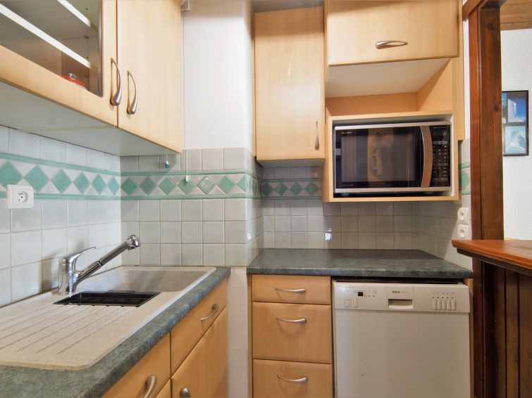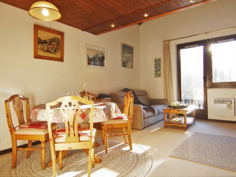 Maisonette 2-kamers 48 m2 op de 3e verdieping. Comfortabel ingericht: groot woon-/eetkamer. Uitgang naar het balkon. 1 kamer met 1 2-pers bed (140 cm, lengte 190 cm). Keuken (afwasmachine, 4 keramische glas kookplaten, broodrooster, waterkoker, elektrische koffiemachine, raclette oven, combimagnetron). Badkamer, aparte WC. Elektrische verwarming. Bovenverdieping: (steile trap) galerij met dakraam met 1 2-pers divanbed (130 cm, lengte 190 cm). Balkon 9 m2, op het zuiden gelegen. Zeer mooi uitzicht op de bergen. Ter beschikking: Internet (Internet (WiFi), extra). Garage nr. 7 au sous-sol, hoogte 190 cm, breedte 240 cm. Let op: niet rokers woning. TV alleen FR. Rookmelders.