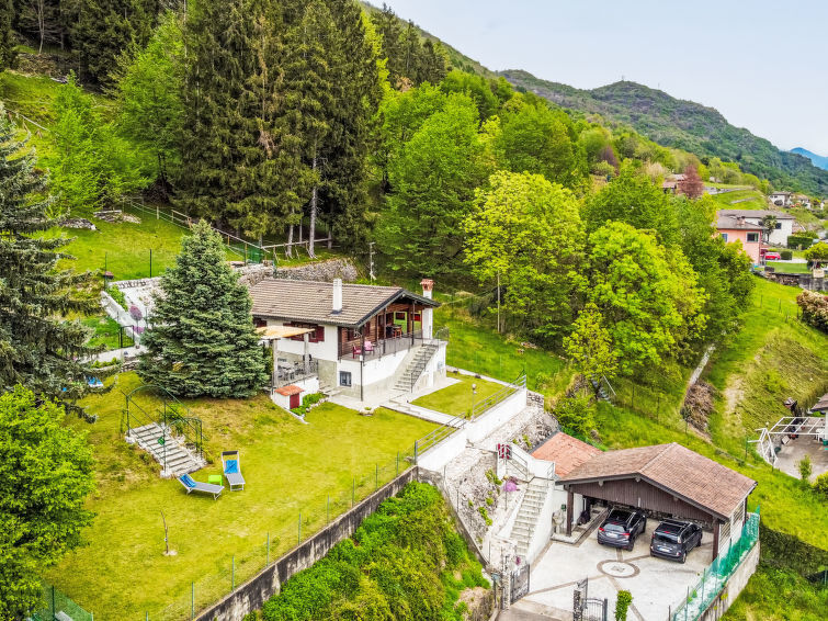 Gezellig, rustieke chalet "Pidaggia Paradise", van 2 verdiepingen, vrijstaand, omgeven door bomen en weiden. 500 m van het centrum van Carlazzo, 5 km van het centrum van Porlezza, 21 km van het centrum van Lugano, rustige, zonnige, verhoogde ligging tegen een helling, villa wijk, 5 km van het meer, aan een doodlopende weg, te midden van groen. Voor alleengebruik: terrein (omheind), groot, mooie, verzorgde tuin 900 m2 met planten en bomen. Buitendouche, prieel, terras, tuinmeubelen, barbecue. 200 m lange steile toegangsweg tot het terrein. Trappenweg (30 treden) naar het huis. Overdekte parkeerplaats (voor 2 auto's). Levensmiddelenwinkel 450 m, supermarkt 5 km, restaurant 4 km, bar 700 m, bushalte 350 m, treinstation "Lugano" 21 km, zandstrand "Porlezza" 5.5 km, grasstrand "Porlezza" 5.5 km, openluchtzwembad 6 km. Jachthaven 5 km, golfterrein (18 holes) 8 km, surfschool 5.5 km, wandelroutes 200 m vanaf het huis. Attracties in de buurt: Menaggio, Lugano, Villa Fogazzaro Roi, Grotte di Rescia, Villa Carlotta-Tremezzo, Bellagio. Bekende meren kunnen gemakkelijk worden bereikt: Lago di Lugano, Lago di Como. Wandelgebied Val Rezzo, Cascate di Begna, Passo San Lucio. Auto noodzakelijk. De eigenaar accepteert geen jeugdgroepen.