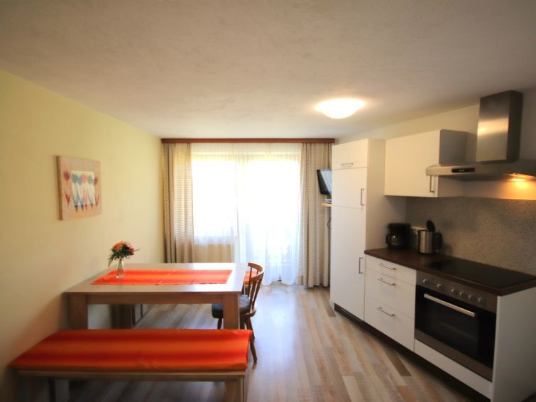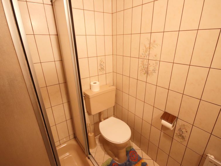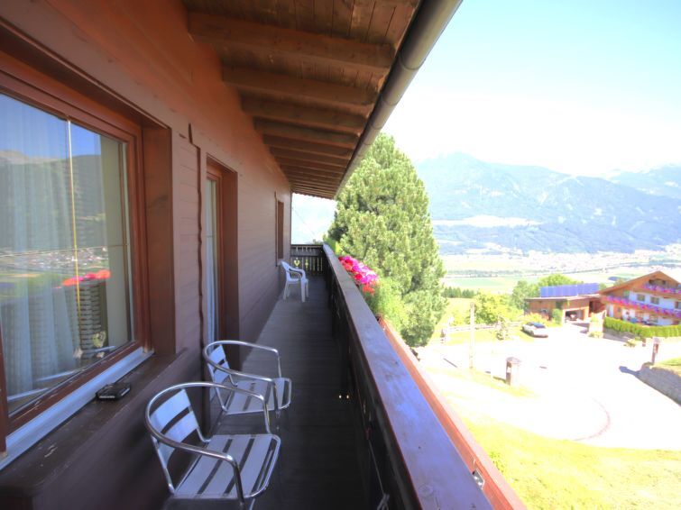 Appartement 3-kamers 80 m2 op de 1e verdieping. Het objekt is geschikt voor 5 volwassenen. Ruim, met veel hout ingericht: hal. 1 kamer met 1 bed, 1 2-pers bed, douche/WC en Sat-TV. Uitgang naar het balkon. 1 2-pers. kamer met douche/WC. Uitgang naar het balkon. Woonkeuken (oven, afwasmachine, 4 keramische glas kookplaten, magnetron, diepvriezer) met eettafel en Sat-TV (Flatscreen TV). Uitgang naar het balkon. Douche/WC. (souterrain: broodrooster, waterkoker, elektrische koffiemachine). Balkon 12 m2. Zeer mooi panoramazicht op de bergen en het dal. Ter beschikking: Internet (Internet (WiFi), gratis). Geschikt voor families. Niet rokers woning. Geen lift.